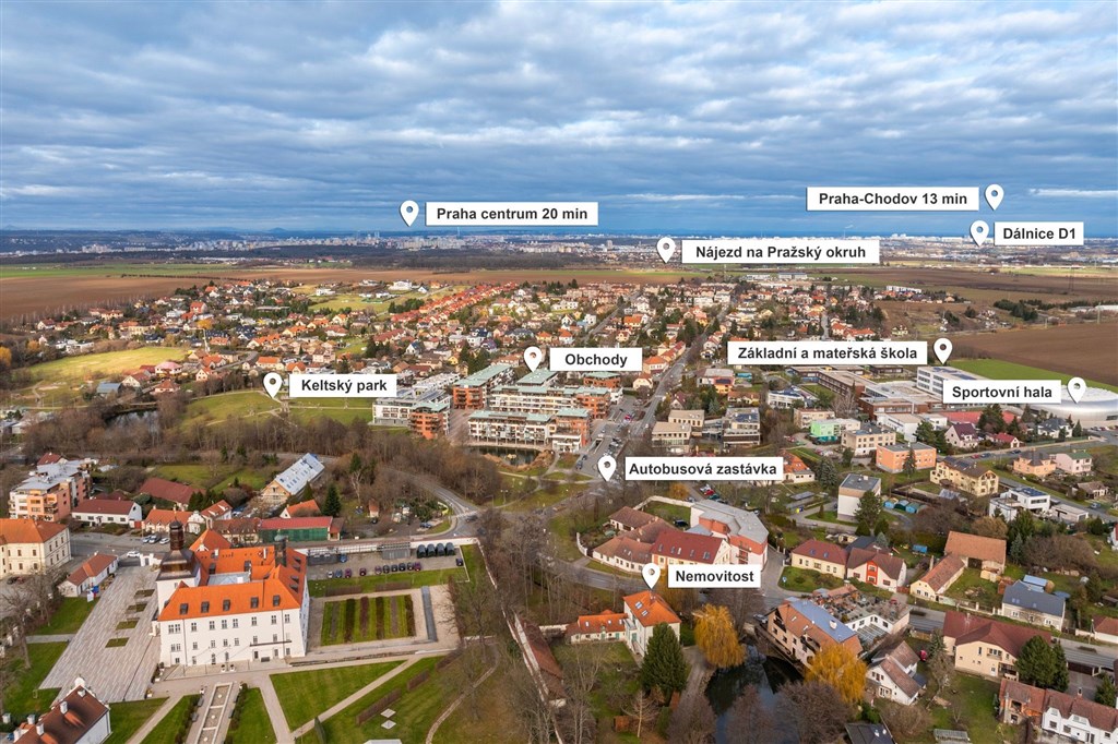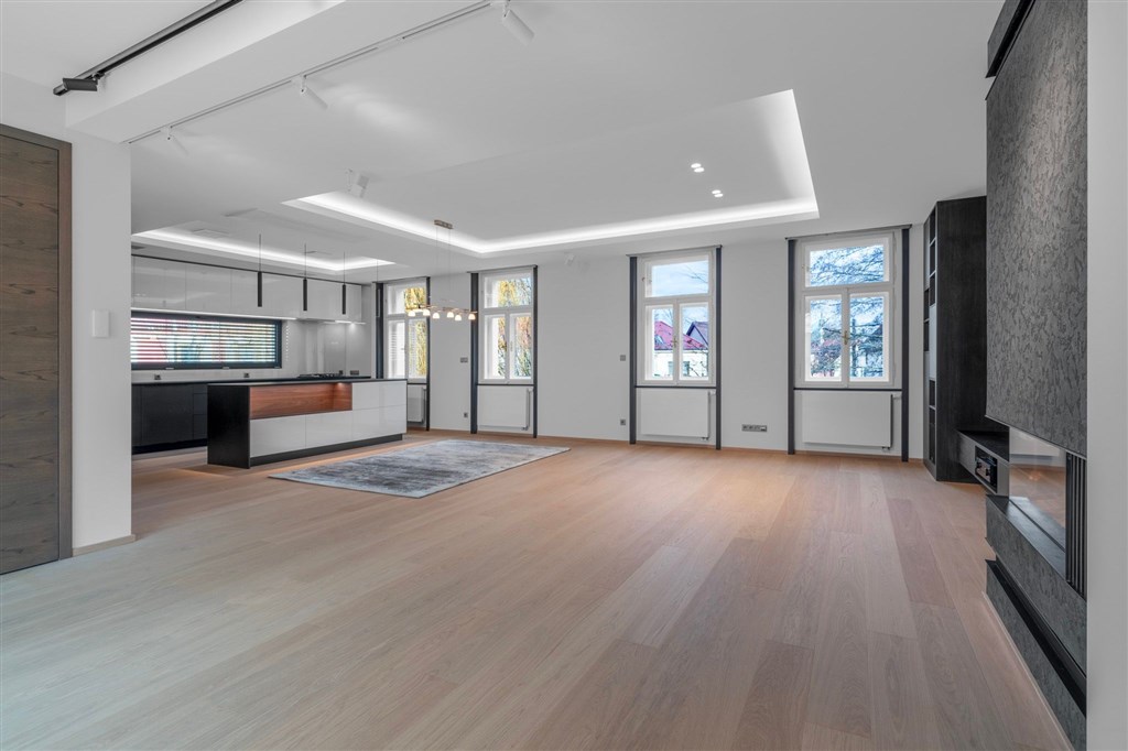 Nadstandardní dvoupodlažní byt 6+kk, 225 m², uzavřený areál – Dolní Břežany Hledáteli výjimečné bydlení s maximálním soukromím, pak tato nabídka splní i ta nejvyšší očekávání. Nabízíme prostorný dvoupodlažní byt o velikosti 225 m², umístěný ve zrekonstruovaném rodinném domě s pouhými dvěma bytovými jednotkami, v soukromém uzavřeném areálu ve vyhledávané lokalitě Dolní Břežany. Dům prošel kompletní rekonstrukcí v roce 2024 a kombinuje moderní technologie s nadčasovou elegancí. Byt se nachází ve 2. nadzemním podlaží a v podkroví a nabízí dispozici 6 pokojů + kuchyni, ideální pro rodinné bydlení i práci z domova. Dispozice a interiér: Dominantou bytu je světlý obytný prostor s elegantní kuchyní vybavenou značkovými vestavěnými spotřebiči (lednice, mrazák, myčka, mikrovlnná trouba, elektrická trouba, plynový sporák, digestoř). Interiér je částečně zařízen a ponechává dostatek prostoru pro individuální doladění. Vysoké stropy a velká okna dodávají bytu vzdušnost a světlo, zatímco plynový krb vytváří příjemnou atmosféru domova. Technické vybavení: Plynový kotel Viessmann Radiátory s možností dálkového ovládání Klimatizace (1× 2. NP, 3× podkroví) Dva elektrické bojlery (každé patro samostatně) Venkovní hliníkové žaluzie „Z“ Elektricky ovládaná markýza Energetická třída C IS: voda (studna / řád), plyn, elektřina Exteriér a společné prostory Součástí bytu je prostorný balkon o velikosti 12 m² s výhledem do klidného vnitrobloku a na sousední zámek. K dispozici jsou také dvě parkovací stání, z nichž jedno je v kryté sdílené garáži. Obyvatelé domu mohou využívat společnou zahradu, altán, venkovní kuchyni a grilovací zónu. Lokalita: Dolní Břežany patří dlouhodobě mezi nejžádanější lokality v okolí Prahy. Nabízejí kompletní občanskou vybavenost, školy, školky, obchody, restaurace i rychlé spojení do Prahy. Okolní příroda, parky a lesy poskytují ideální podmínky pro aktivní i klidový odpočinek. Závěr: Tento byt je ideální volbou pro klienty, kteří hledají prostor, soukromí, bezpečí a vysoký standard bydlení v kombinaci s výbornou dostupností do Prahy. Rádi vám poskytneme více informací nebo zajistíme osobní prohlídku.