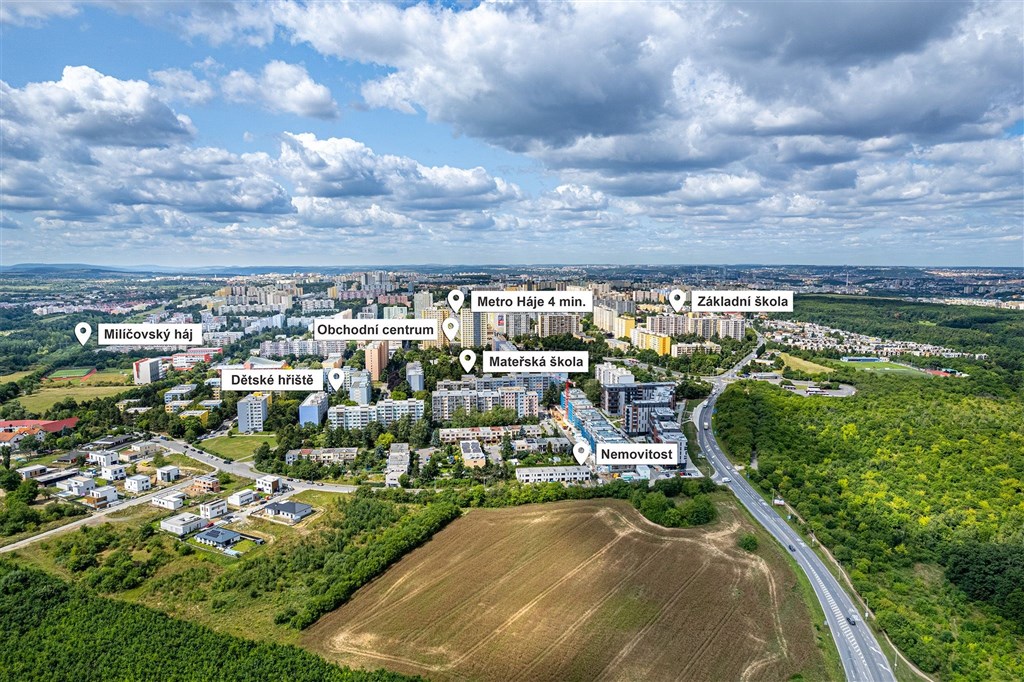 Ke střednědobému pronájmu na půl roku nabízíme krajní řadový rodinný dům na prestižní adrese Exnárova, Praha 4 Háje. Tato klidná lokalita v metropoli poskytuje vynikající dostupnost do centra města díky nedaleké stanici metra C, Háje. Nemovitost, postavená v roce 2019, se rozkládá na pozemku o celkové výměře 327 m², přičemž zastavěná plocha činí 72 m². Dům je rozložen do dvou podlaží s podlahovou plochou 110 m². Obytná plocha 95 m² je rozdělena do dispozice 4+kk, která zahrnuje čtyři pokoje a kuchyňský kout. Jižně orientovaná terasa o rozloze 16 m² zajišťuje dostatek světla po celý den. K domu patří také prostorná zahrada o rozloze 179 m², ideální pro relaxaci a rekreační aktivity, a 38 m² před domem pro parkování dalšího automobilu. VYBAVENÍ A KOMFORT Kuchyně v elegantní bílé barvě je vybavena moderními vestavěnými spotřebiči, včetně lednice, mrazáku, varné desky, digestoře, elektrické trouby, mikrovlnné trouby a myčky. Dům je dále vybaven centrálním vysavačem a venkovními žaluziemi s elektrickým pohonem, které zajišťují maximální komfort a úsporu energie. Podlahy jsou laminátové ve všech pokojích, zatímco v kuchyni, koupelnách a na chodbě najdete černou dlažbu. TECHNICKÉ PARAMETRY Efektivní vytápění zajišťuje plynový kotel, který nabízí vysokou účinnost a nízké provozní náklady. Energetický certifikát třídy B podtrhuje energetickou úspornost domu. Dům je navíc napojen na veřejný vodovod a kanalizaci. LOKALITA A OBČANSKÁ VYBAVENOST Vynikající dopravní dostupnost je zajištěna díky blízkosti autobusové zastávky, metra a hlavních dopravních tepen. Veškerá občanská vybavenost je na dosah – od obchodů, škol a školek, po lékařská zařízení, restaurace a kulturní instituce. Tento rodinný dům je ideální volbou pro ty, kteří touží po moderním a dobře vybaveném domově v klidné rezidenční čtvrti Prahy, obklopené přírodou. Blízkost zeleně zajišťuje přístup k řadě parků a zelených ploch vhodných pro procházky, běh či cyklistiku. Milíčovský les a Hostivařská přehrada jsou v bezprostředním sousedství, poskytující bohaté možnosti pro relaxaci a aktivní odpočinek. PODMÍNKY PRONÁJMU Měsíční nájemné: 48 000 Kč Poplatky a služby: 7 500 Kč (z toho 2 500 Kč za vodu a odpad) Plyn a elektřina: Budou převedeny na nájemce a hradí se samostatně Kauce: 96 000 Kč Provize: 48 000 Kč Dům je volný k okamžitému nastěhování. Pro více informací nebo sjednání prohlídky mě neváhejte kontaktovat.