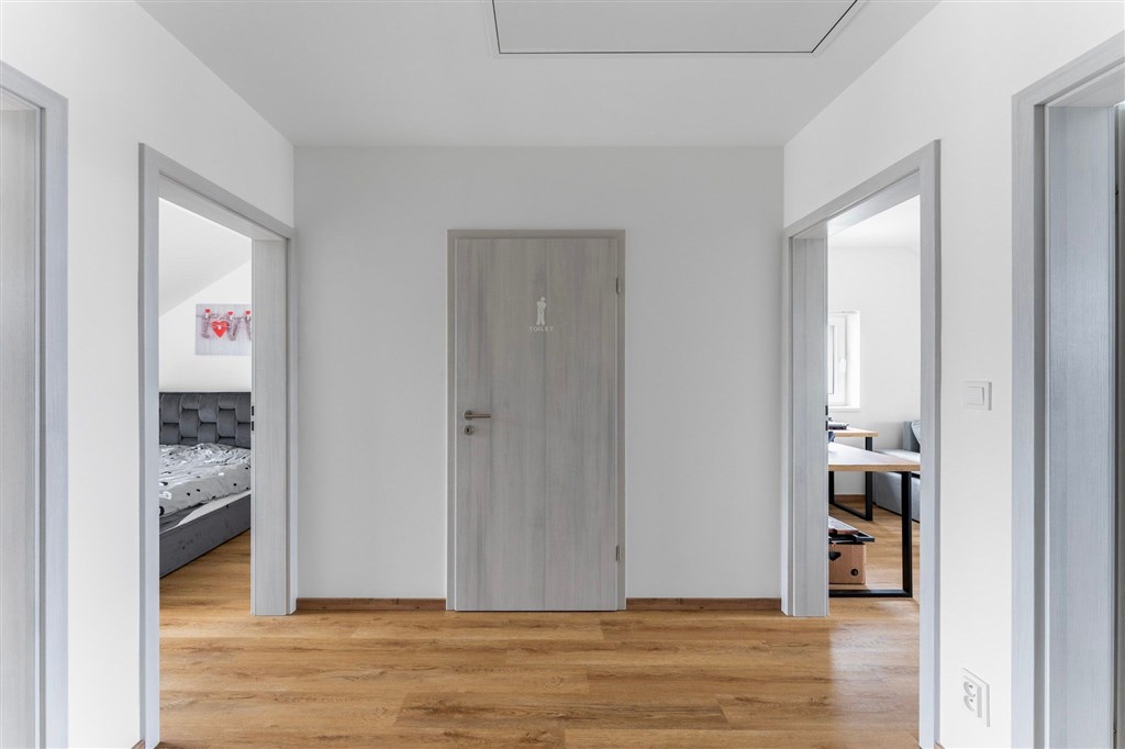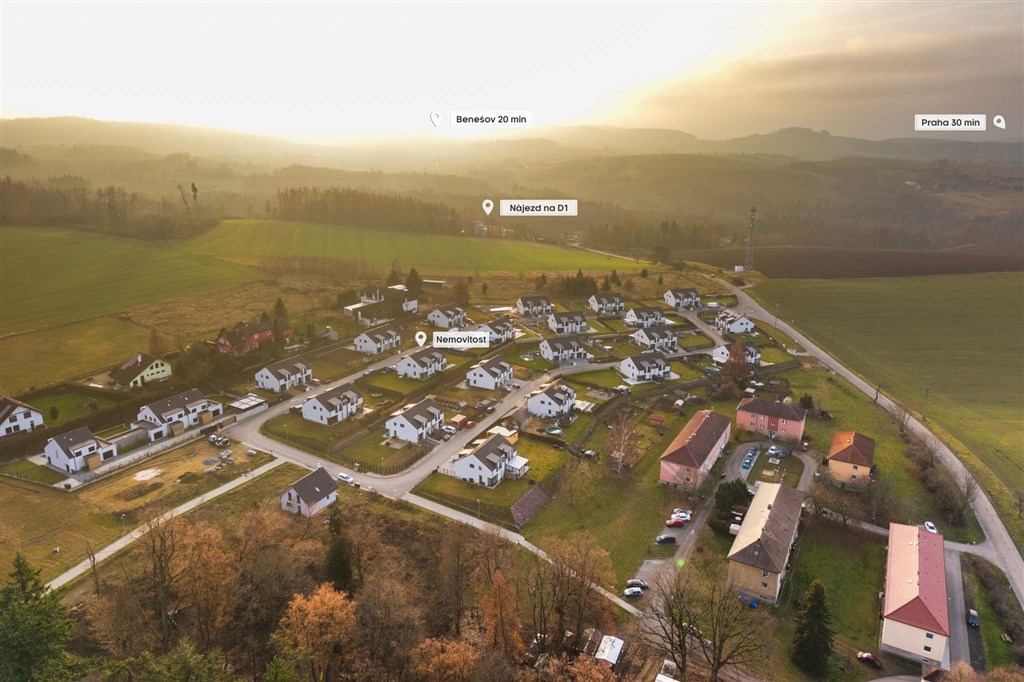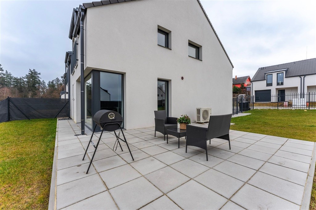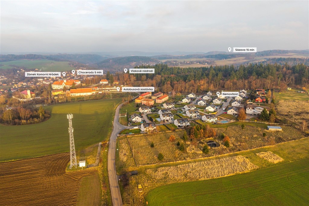 Nabízíme k prodeji moderní rodinný dům 5+kk s nízkými provozními náklady v nové lokalitě Komorního Hrádku u Chocerad ve Středočeském kraji. Kolaudován byl v roce 2025 a je připraven k okamžitému nastěhování. PROČ PRÁVĚ TENTO DŮM? • Nízké provozní náklady elektřina pouze 3 000 Kč/měsíc + vodné a stočné • Nová rezidenční čtvrť 46 domů moderní zástavba • Panoramatický výhled do okolní přírody • Vynikající dostupnost 29. km D1, Praha Chodov 15 až 20 min autem • Nájezd na dálnici D1 cca 1 km • Jižní orientace terasy a zahrady maximální prosluněnost DISPOZICE A PARAMETRY: Dispozice 5+kk • Užitná plocha 163 m² • Podlahová plocha 143 m² • Obytná plocha 105 m² • Terasa 20 m² • Pozemek 503 m² • 2 parkovací místa. DISPOZICE DOMU: První podlaží: • Obývací pokoj s kuchyňským koutem: 37 m² • Chodba: 6,45 m² • Koupelna s WC: 5,14 m² • Garáž: 10 m² Druhé podlaží: • 4x ložnice: 10,11 m², 10,27 m², 12,60 m², 12,83 m² • Koupelna s WC: 4,61 m² • Chodba: 6,39 m² Půda: • 28 m² pochozí plochy (OSB desky) na uložení mimosezónních věcí. VYBAVENÍ: Kuchyň: Indukční varná deska, elektrická trouba, vestavěná lednice, vestavěný mrazák, mikrovlnná trouba, komínová digestoř, myčka nádobí. Technologie: Tepelné čerpadlo vzduchvoda (ekonomické vytápění), optické vlákno, energetická třída B, příprava na krbová kamna (komín). Interiér: Vinyl na podlahách, v koupelnách a v předsíni dlažba. Prosvětlené prostorné místnosti, prostorná terasa s výhledem do krajiny, variabilní dispozice, která umožňuje kombinaci pokojů, pracoven, ložnic atd. Zahrada: Připravená na pěstování ve vyvýšených záhonech, jinak travnatá plocha s minimální údržbou. Místo na grilování na terase. Orientace: Terasa orientovaná na jih, zahrada na jih a západ maximální prosluněnost po celý den. Úložné prostory: Garáž 10 m², půda 28 m². LOKALITA KLID S PERFEKTNÍ DOSTUPNOSTÍ: Dopravní dostupnost: 29. km dálnice D1 • Průhonice 12 min • Praha Chodov 15 až 20 min • Ideální pro dojíždění do Prahy Občanská vybavenost: Mateřská škola a základní škola • Obchody a restaurace • Lékař Příroda a relaxace: Louky, zahrady, lesy • Řeka v blízkosti • Ideální pro procházky a aktivní odpočinek KOMUNITA: Komunita 46 rodin pořádá sousedská setkání a vytváří přátelské prostředí, kde se děti mohou bezpečně hrát venku a sousedé si vzájemně pomáhají. Tohle není jen dům je to domov v pravém slova smyslu. TECHNICKÉ INFORMACE: Kolaudace 2024 • Novostavba • Energetická třída B • Tepelné čerpadlo vzduchvoda • Napojení: elektřina, voda, kanalizace, internet • Volný k okamžitému nastěhování FINANČNÍ PODMÍNKY: Možnost financování hypotékou rádi pomůžeme se sjednáním. IDEÁLNÍ PRO: Rodiny s dětmi • Páry plánující rodinu • Ty, kdo chtějí žít v přírodě s rychlou dostupností do Prahy • Každého, kdo oceňuje moderní bydlení s nízkými provozními náklady Neváhejte a přijďte se podívat na váš budoucí domov! Pro více informací nebo sjednání prohlídky mě neváhejte kontaktovat.