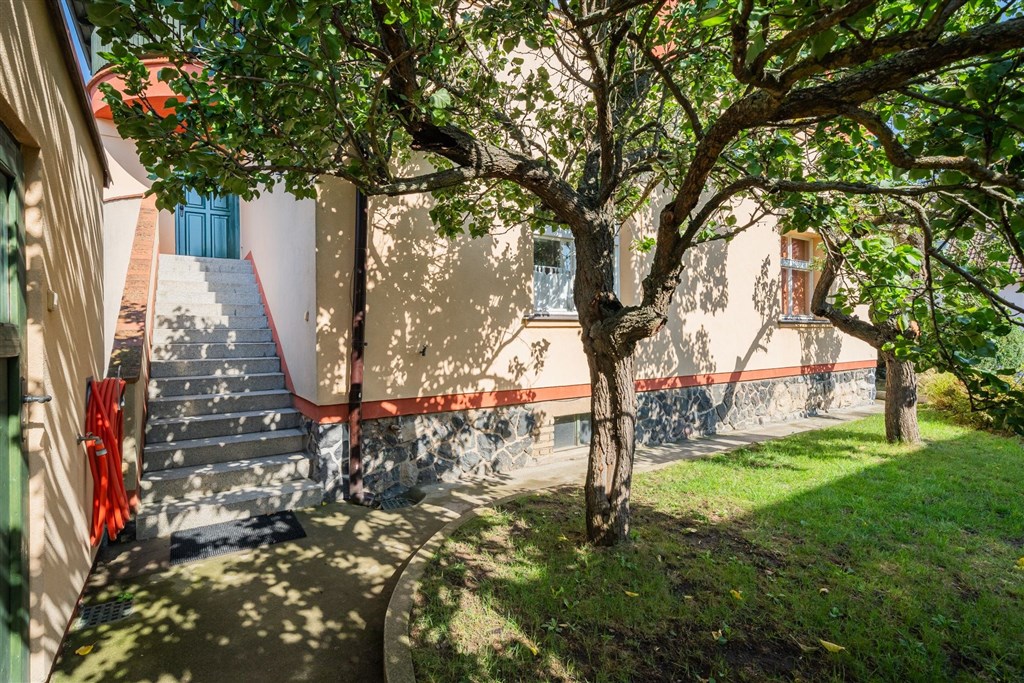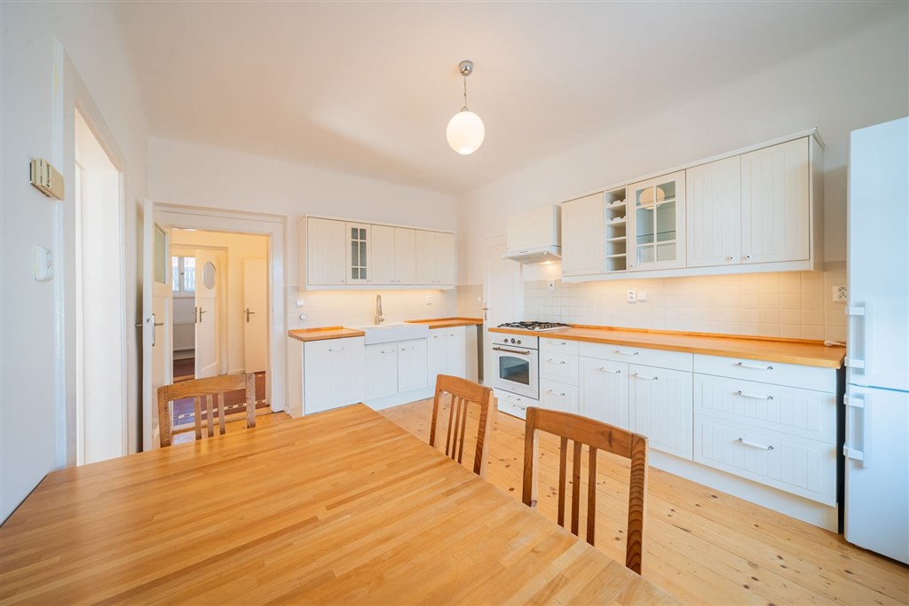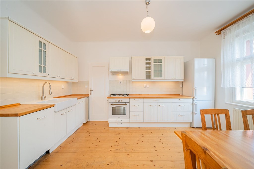 Nabízíme od 1. 2. 2026 (případně dříve – na dotaz) k pronájmu prostorný byt 5+1 ve stylové prvorepublikové vile ze 30. let ve vilové čtvrti Prahy 4 – Modřany, ulice Nečova. Ideální pro rodiny vracející se do Prahy ze zahraničí nebo pro expaty hledající autentické bydlení s charakterem. Nabídka je obzvlášť vhodná pro rodiny s dětmi díky blízkosti Prague British International School – Libuš campus. Byt má dispozici 5+1 s čistou obytnou plochou 150 m² a nabízí využitelnou půdu, sdílenou kolárnu, zastřešenou terasu, parkovací stání na vlastním pozemku a malou zahrádku na samostatném pozemku o velikosti 110 m². Vila prošla citlivou rekonstrukcí a zachovala si výrazné prvorepublikové prvky – kombinace historického šarmu s moderním komfortem. DISPOZICE: Byt je rozložen do tří nadzemních podlaží. 1. NP: Vstupní zádveří s úložným prostorem a vstupem do sklepa. 2. NP (hlavní obytné patro): Stylová kuchyň se značkovými spotřebiči a spíží, prostorný obývací pokoj s balkonem do ulice a oknem do zahrady, ložnice, koupelna s vanou, pračkou a kombinovaným plynovým kotlem, samostatné WC. 3. NP (podkroví): Prostorná obytná místnost se vstupy do dvou menších ložnic a koupelny s WC. Zákoutí nabízí další prostor na spaní pro třetí dítě nebo návštěvy. Součástí je nika pro uložení šatstva. Mezipatro: Zastřešená terasa se sedacím nábytkem – ideální pro ranní kávu nebo večerní relax. Půda: Pochozí, určená k uložení věcí, přístupná dřevěným schodištěm. TECHNICKÉ VYBAVENÍ: Dům je napojen na všechny inženýrské sítě včetně optického vysokorychlostního internetu (ideální pro home office). Byt má nová plastová okna, je aktuálně vymalován na bílo, obytné místnosti jsou částečně vybaveny nábytkem. IDEÁLNÍ PRO: • Rodiny vracející se do ČR ze zahraničí • Expat rodiny s dětmi • Zaměstnance mezinárodních firem • Ty, kdo oceňují autentické bydlení s historií a charakterem LOKALITA A DOSTUPNOST: Tylova čtvrť nabízí výbornou dopravní dostupnost – tramvaje směr centrum přes Braník, autobusy na metro C (Budějovická, Kačerov) i metro B (Smíchovské nádraží). Občanská vybavenost: Školy, školky, mezinárodní školy (Prague British International School – 5 min autem), poliklinika, obchodní centra, supermarkety (Billa, Kaufland, Lidl). Příroda a sport: Modřanská rokle, Kunratický les, cyklostezky, sportovněkulturní zóna v Braníku s restauracemi. FINANČNÍ PODMÍNKY: Nájemné: 42 000 Kč/měsícPoplatky: 8 500 Kč/měsíc Kauce: 84 000 Kč Provize: 42 000 Kč + DPH Prohlídky možné po dohodě. Více informací na prohlídce.