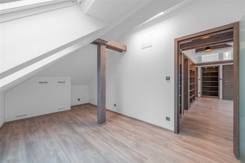 Nadstandardní dvoupodlažní byt 6+kk, 225 m², uzavřený areál – Dolní Břežany Hledáteli výjimečné bydlení s maximálním soukromím, pak tato nabídka splní i ta nejvyšší očekávání. Nabízíme prostorný dvoupodlažní byt o velikosti 225 m², umístěný ve zrekonstruovaném rodinném domě s pouhými dvěma bytovými jednotkami, v soukromém uzavřeném areálu ve vyhledávané lokalitě Dolní Břežany. Dům prošel kompletní rekonstrukcí v roce 2024 a kombinuje moderní technologie s nadčasovou elegancí. Byt se nachází ve 2. nadzemním podlaží a v podkroví a nabízí dispozici 6 pokojů + kuchyni, ideální pro rodinné bydlení i práci z domova. Dispozice a interiér: Dominantou bytu je světlý obytný prostor s elegantní kuchyní vybavenou značkovými vestavěnými spotřebiči (lednice, mrazák, myčka, mikrovlnná trouba, elektrická trouba, plynový sporák, digestoř). Interiér je částečně zařízen a ponechává dostatek prostoru pro individuální doladění. Vysoké stropy a velká okna dodávají bytu vzdušnost a světlo, zatímco plynový krb vytváří příjemnou atmosféru domova. Technické vybavení: Plynový kotel Viessmann Radiátory s možností dálkového ovládání Klimatizace (1× 2. NP, 3× podkroví) Dva elektrické bojlery (každé patro samostatně) Venkovní hliníkové žaluzie „Z“ Elektricky ovládaná markýza Energetická třída C IS: voda (studna / řád), plyn, elektřina Exteriér a společné prostory Součástí bytu je prostorný balkon o velikosti 12 m² s výhledem do klidného vnitrobloku a na sousední zámek. K dispozici jsou také dvě parkovací stání, z nichž jedno je v kryté sdílené garáži. Obyvatelé domu mohou využívat společnou zahradu, altán, venkovní kuchyni a grilovací zónu. Lokalita: Dolní Břežany patří dlouhodobě mezi nejžádanější lokality v okolí Prahy. Nabízejí kompletní občanskou vybavenost, školy, školky, obchody, restaurace i rychlé spojení do Prahy. Okolní příroda, parky a lesy poskytují ideální podmínky pro aktivní i klidový odpočinek. Závěr: Tento byt je ideální volbou pro klienty, kteří hledají prostor, soukromí, bezpečí a vysoký standard bydlení v kombinaci s výbornou dostupností do Prahy. Rádi vám poskytneme více informací nebo zajistíme osobní prohlídku.